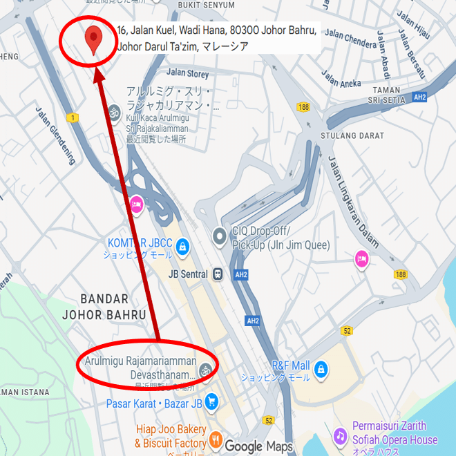 出発地点は、JBのリトルインディアのど真ん中のJB Mariamman Temple で、間違いなさそうなのですが、終点が、ChatGPT 経由で調べても、どうもよくわからない。Google Map では、下記Arulmigu Thandayuthapani Temple でJohor Bahru を入れても出てこなくて、情報源からいろいろ調べると、寺院の名前ではなく住所から、何となくここかな、というところがわかりました。ほんとかな?!20-30分くらいで歩けそうなので、ここも歩いてみます!